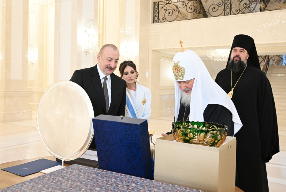 Sonra Moskvanın və Bütün Rusiyanın Patriarxı Kirill Rus Pravoslav kilsəsinin I dərəcəli “Müqəddəs Knyaginya Olqa” ordenini Azərbaycan Respublikasının Birinci vitse-prezidenti və Heydər Əliyev Fondunun prezidenti Mehriban Əliyevaya təqdim etdi.