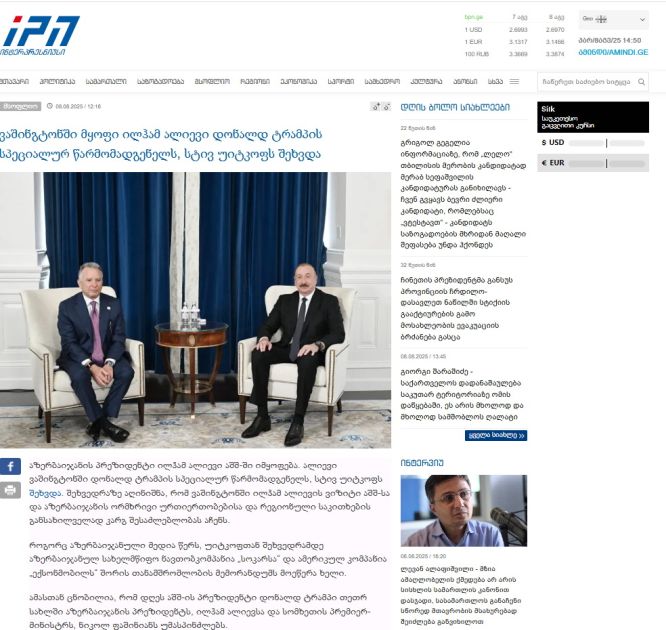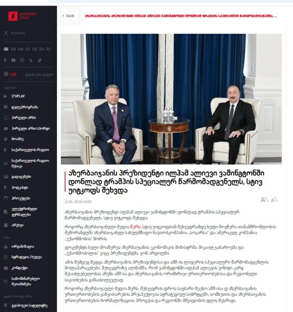 Qeyd olunur ki, avqustun 7-də Azərbaycan Respublikasının Prezidenti İlham Əliyev Vaşinqtonda ABŞ Prezidentinin xüsusi elçisi Stiv Uitkoff ilə görüşüb.