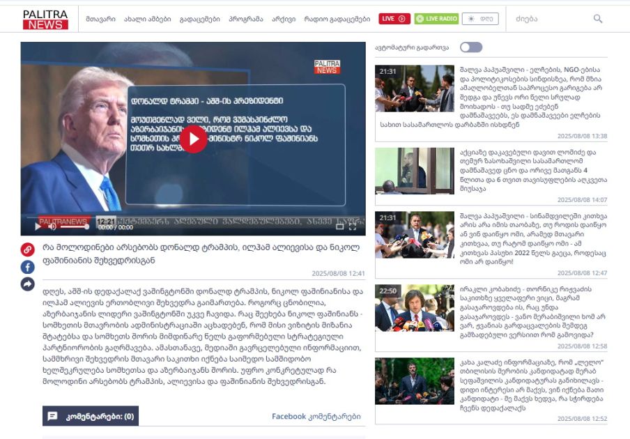 AZƏRTAC xəbər verir ki, “interpressnews.ge”, “resonancedaily.com”, “aktual.ge”, “for.ge”, “netgazeti.ge”, “tabula.ge”, “info9.ge”, “news.ge”, “newposts.ge”, “interpress.ge”, “24news.ge”, “qafqazturk.com” informasiya portalları, “1tv.ge” televiziya kanalı avqustun 7-də və 8-də silsilə materiallar yayıblar.