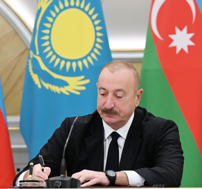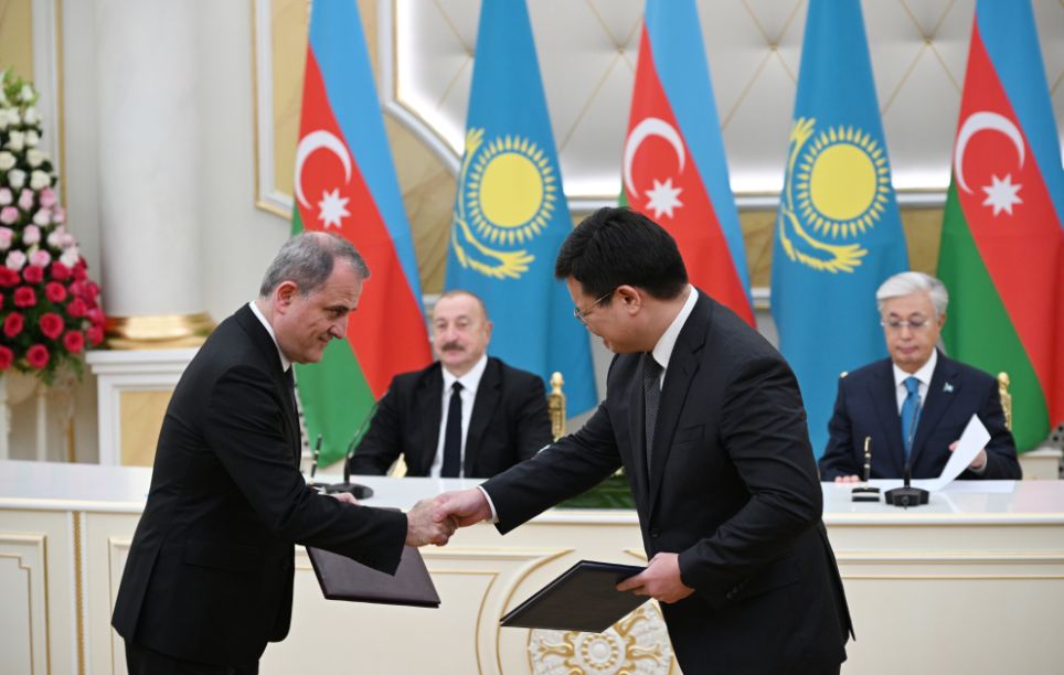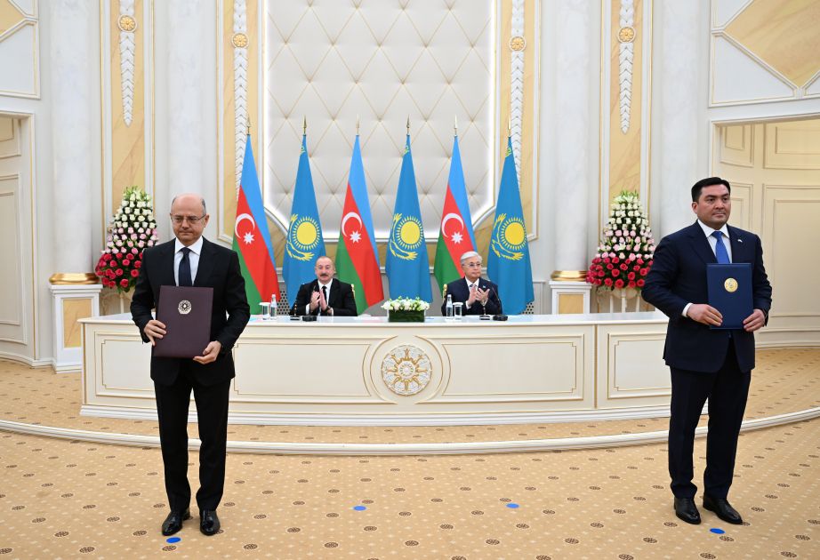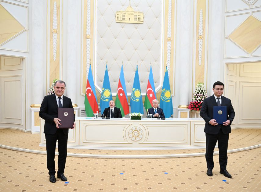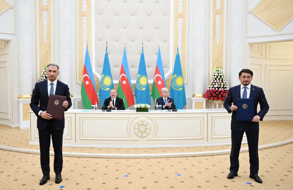Sonra Azərbaycan-Qazaxıstan sənədləri mübadilə olundu.