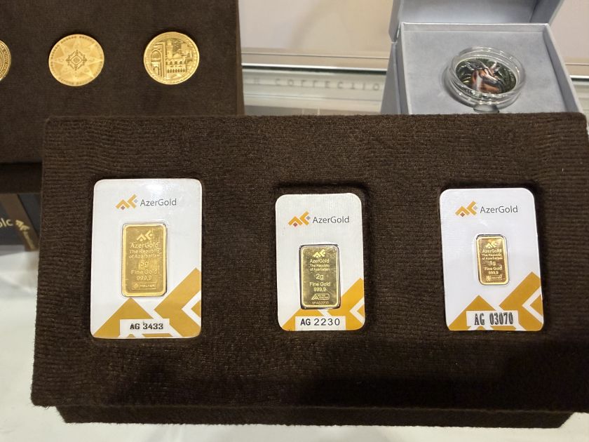 “AzerGold” QSC tərəfindən ölkəmizin pərakəndə satış bazarına təqdim edilən qızıl və gümüş sikkələr, eləcə də qızıl külçələr beynəlxalq sərginin iştirakçılarının böyük marağına səbəb olub. Ziyarətçilərə Ümummilli Lider Heydər Əliyevin anadan olmasının 100-cü ildönümü münasibətilə “Smartminting” texnologiyası əsasında 3D formatında istehsal edilmiş “100 il və onun fövqündə bir irs” unikal qızıl sikkəsi, “Uzun Həsən”, Qarabağ kolleksiyasına aid “Qarabağ inciləri”, “Qarabağ xalçası – Çələbi”, “Şuşa”, “Xurşidbanu Natəvan”, “Zəfər”, “İçərişəhər”, “Heydər Əliyev Fondu”, “Heydər Əliyev Mərkəzi”, “Naxçıvan”, “Qobustan” sikkələri daxil olmaqla, Azərbaycanın müasirliyini, tarix və incəsənətini, qədim ənənələrini təbliğ edən sikkələr barədə ətraflı məlumatlar verilib. Azərbaycanın füsunkar təbiətini, nadir növlərin qorunması ideyasını və innovativ istehsal texnologiyasını özündə birləşdirən numizmatika layihəsi çərçivəsində ərsəyə gətirilən yeni nəsil gümüş sikkə kolleksiyası da maraqla qarşılanıb. Bu kolleksiya Azərbaycanın nadir fauna növlərini əks etdirən “Ceyran”, “Bəbir” və “Bezoar keçisi” olmaqla üç unikal sikkədən ibarətdir.
