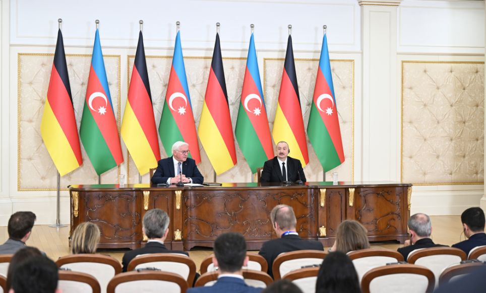 Aprelin 2-də Azərbaycan Respublikasının Prezidenti İlham Əliyev və Almaniya Federativ Respublikasının Prezidenti Frank-Valter Ştaynmayer mətbuata bəyanatlarla çıxış edib, jurnalistlərin suallarını cavablandırıblar.