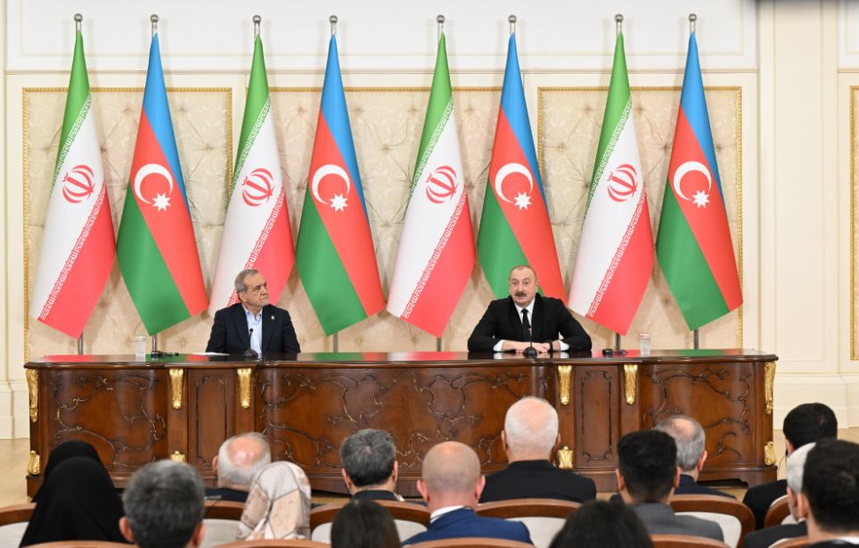 Aprelin 28-də Azərbaycan Respublikasının Prezidenti İlham Əliyev və İran İslam Respublikasının Prezidenti Məsud Pezeşkian mətbuata bəyanatlarla çıxış ediblər.