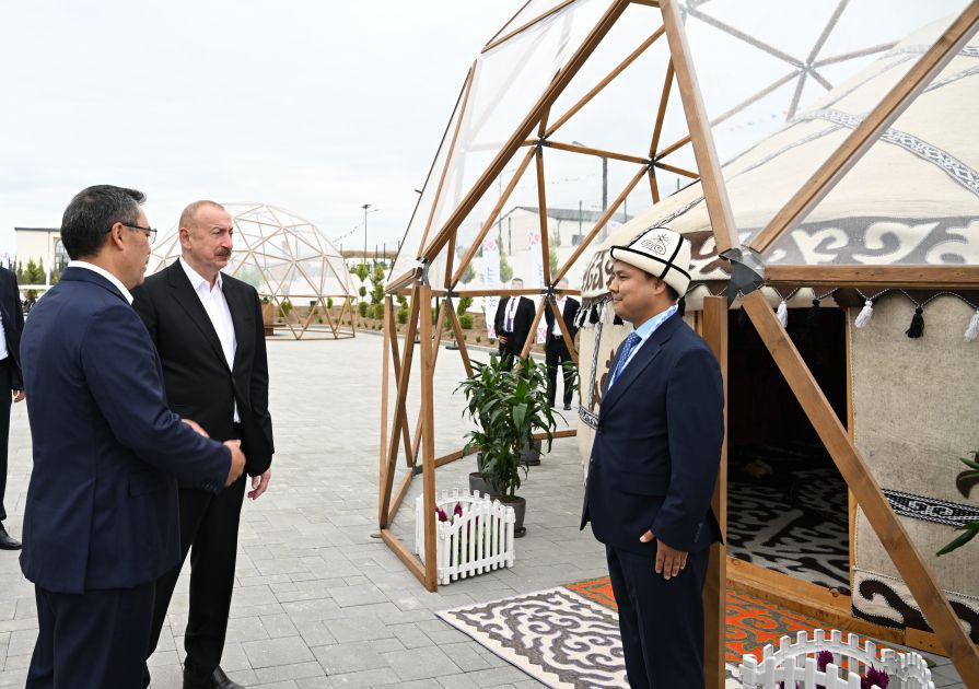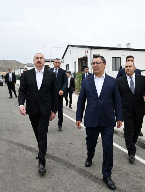 Sonra prezidentlər İlham Əliyev və Sadır Japarov yeni mənzillərə köçən sakinlərlə görüşdülər.