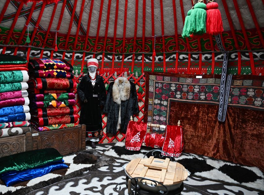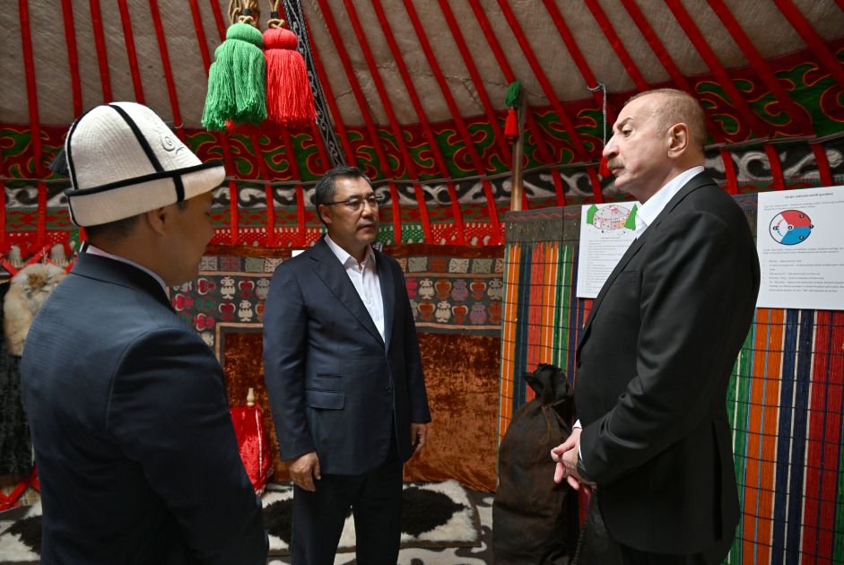 Əvvəlcə prezidentlər məktəbin həyətində quraşdırılan yurtaya baxdılar. Səyyar yaşayış yeri kimi asanlıqla qurulub-sökülən yurta köçəri həyat tərzi üçün nəzərdə tutulur. Hazırda Mərkəzi Asiyada turizm istiqaməti kimi bir çox türk xalqları yurta turizmini inkişaf etdirirlər.