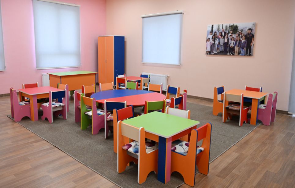 Prezidentlər İlham Əliyev və Sadır Japarov Xıdırlı kəndi körpələr evi-uşaq bağçasının binasında yaradılan şəraitlə tanış oldular. Kənddə məskunlaşacaq əhali üçün tələbata uyğun inşa olunan körpələr evi-uşaq bağçası 120 yerlikdir. Binada qrup otaqları, musiqi otağı, idman zalları balacaların ixtiyarına veriləcək. Burada uşaqların özlərini rahat və qayğısız hiss etmələri, onların təlim-tərbiyəsi ilə yüksək səviyyədə məşğul olmaq üçün zəruri şərait mövcuddur. Uşaq bağçasının ətrafında yaşıllıq zolaqları salınıb, idman və oyun meydançaları, söhbətgahlar yaradılıb. Binanın damında Günəş panelləri quraşdırılıb.