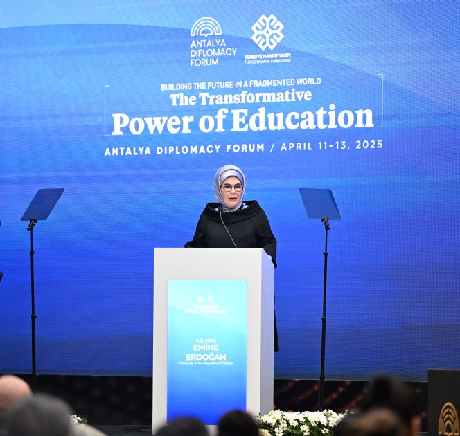 Türkiyənin birinci xanımı Əminə Ərdoğan çıxış edərək müharibələrin çoxaldığı bir dövrdə təhsilin nə qədər əhəmiyyətli olduğuna diqqət çəkdi. Bildirdi ki, təhsil bu gün sosial iştirak və davamlı inkişaf üçün hər zaman olduğundan daha çox vacibdir.
