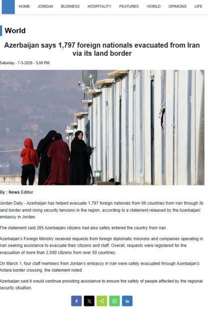 İordaniya mətbuatında regionda yaranmış gərgin təhlükəsizlik vəziyyəti fonunda Azərbaycan Respublikasının həyata keçirdiyi təxliyə tədbirləri ilə bağlı məlumatlar dərc olunub.