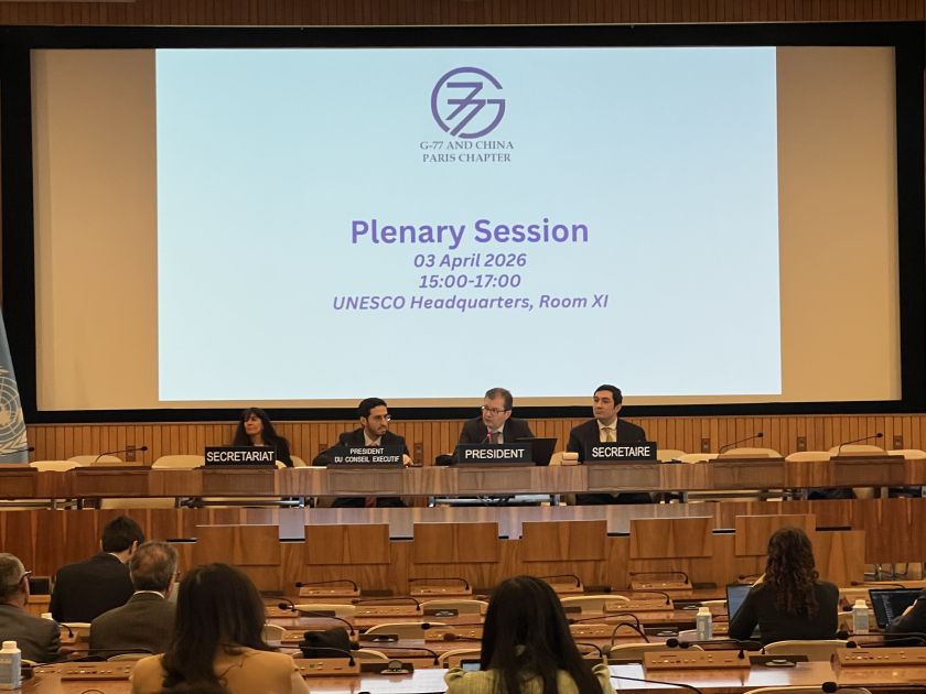 UNESCO-nun mənzil-qərargahında Azərbaycanın sədrliyi ilə G-77 və Çin Qrupunun növbəti plenar iclası keçirilib. Tədbirdə qonaq qismində UNESCO-nun İcraiyyə Şurasının sədri, Qətərin UNESCO yanında daimi nümayəndəsi Nasser Bin Hamad Al Hinzab iştirak edib.