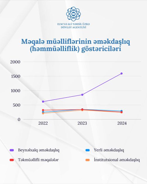 İstifadə göstəriciləri ilə bərabər azərbaycanlı alimlərin ötən il 1800-dən bir qədər çox olan məqalə sayı bu il artaraq 2382-ə bərabər olub. 2024-cü ildə dərc olunan elmi işlərin sayının hesablanmasının 2025-ci ilin may-iyun aylarınadək davam edəcəyini nəzərə alsaq, bu halda ölkə üzrə ümumi elmi işlərin sayının tarixdə ilk dəfə 3000-dən çox olacağı istisna edilmir.