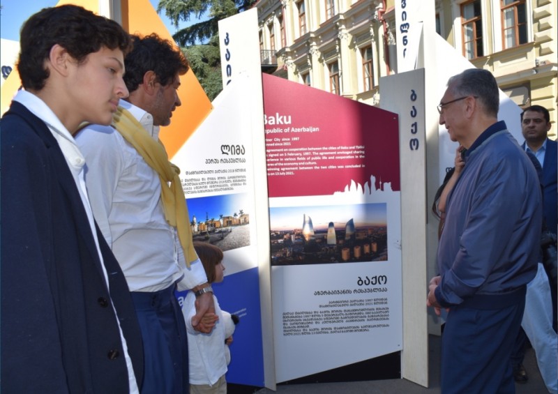 Sonra E.Əzizov, H.Həsənov və səfir Faiq Quliyev Orbeliani sarayının qarşısında təşkil olunmuş yarmarkaya və burada Tbilisi ilə qardaşlaşmış şəhərlərə aid guşələrlə tanış olublar.