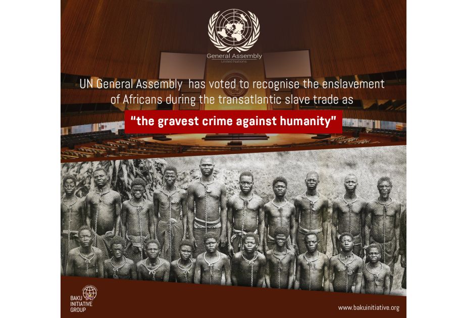 “Bakı Təşəbbüs Qrupu BMT Baş Assambleyası tərəfindən qəbul edilmiş transatlantik qul ticarətini "bəşəriyyətə qarşı törədilmiş ən ağır cinayət" kimi tanıyan qətnaməni tam dəstəklədiyini bəyan edir.
