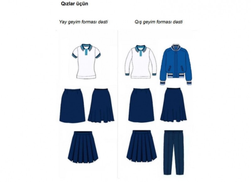 Xatırladaq ki, Baş nazir Əli Əsədov martın 17-də “Dövlət ümumi təhsil müəssisəsi təhsilalanlarının geyim formalarının təsvirləri”nin təsdiq edilməsi haqqında” qərar imzalayıb. Qərarda məktəblər üçün nəzərdə tutulmuş 4 rəngdə (tünd-göy, tünd-boz, qəhvəyi-yaşıl (xaki), açıq-qəhvəyi) geyim formasının nümunəsi təklif olunub. Təhsilalanların geyim forması qış və yay formalarından ibarətdir. Qızlar üçün yay forması - üçdüyməli qısaqol köynək və ətək, oğlanlar üçün yay forması - üçdüyməli qısaqol köynək və şalvar. Qızlar üçün qış forması - üçdüyməli uzunqol köynək, ətək və ya şalvar, önü bağlanılan cibli jaket, oğlanlar üçün qış forması - üçdüyməli uzunqol köynək, şalvar və önü bağlanılan cibli jaket. Məktəblərin sifarişi əsasında bu qərarda göstərilən rənglərdən və modellərdən istifadə olunmaqla müxtəlif dəstlər hazırlana bilər. Hər məktəbdə yalnız bir geyim forması dəsti tətbiq edilir. Geyim forması dəsti məktəbin Pedaqoji Şurasının qərarı ilə müəyyən olunur və azı 3 tədris ili ərzində dəyişilməz olaraq tətbiq edilir. Qərara əsasən, hazırda istifadədə olan geyim formaları 2022/2023-cü tədris ilinin sonunadək tətbiq edilə bilər.