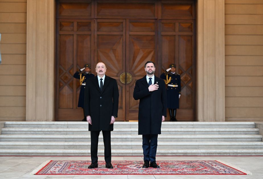 Fəxri qarovul dəstəsi hərbi marşın sədaları altında Azərbaycan Prezidenti İlham Əliyevin və Amerika Birləşmiş Ştatlarının Vitse-prezidenti Ceyms Devid Vensin qarşısından keçdi.