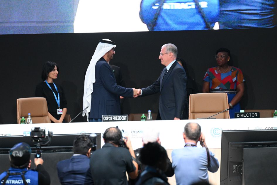 Sonra Azərbaycanın ekologiya və təbii sərvətlər naziri Muxtar Babayev BMT İqlim Dəyişmələri üzrə Çərçivə Konvensiyasının Tərəflər Konfransının 29 sessiyasının Prezidenti seçilib. COP28-in Prezidenti Sultan Ahmad Al-Jaber sessiyanın idarəçiliyini Muxtar Babayevə təhvil verib.