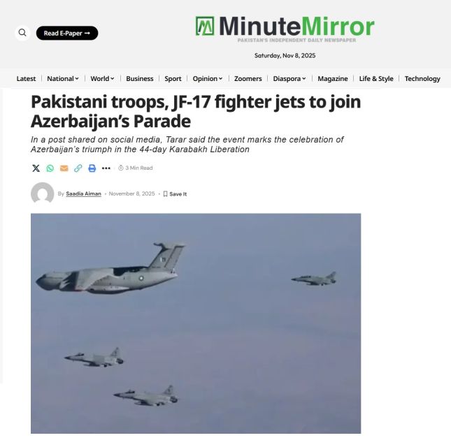 Moldovanın nüfuzlu “Moldova Today” nəşri Bakıda keçirilən Hərbi paradda Azərbaycan, Türkiyə və Pakistan hərbi qüvvələrinin birgə iştirakına, üç qardaş ölkənin liderlərinin çıxışlarına, nümayiş olunan hərbi texnikaya və regionda sabitliyin güclənməsinə xüsusi diqqət ayırıb. “Bu parad təkcə silahların nümayişi deyil, regionda yeni geosiyasi reallığın başlanğıcıdır”, - deyə nəşrdə xüsusi vurğulanıb.