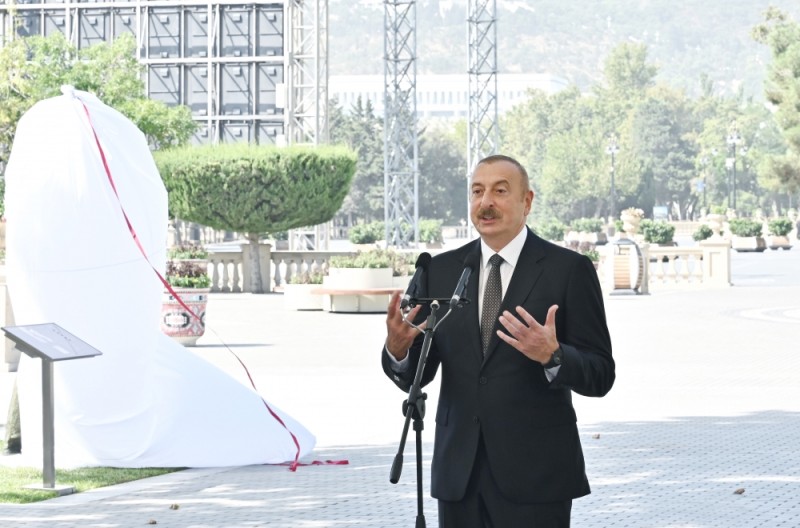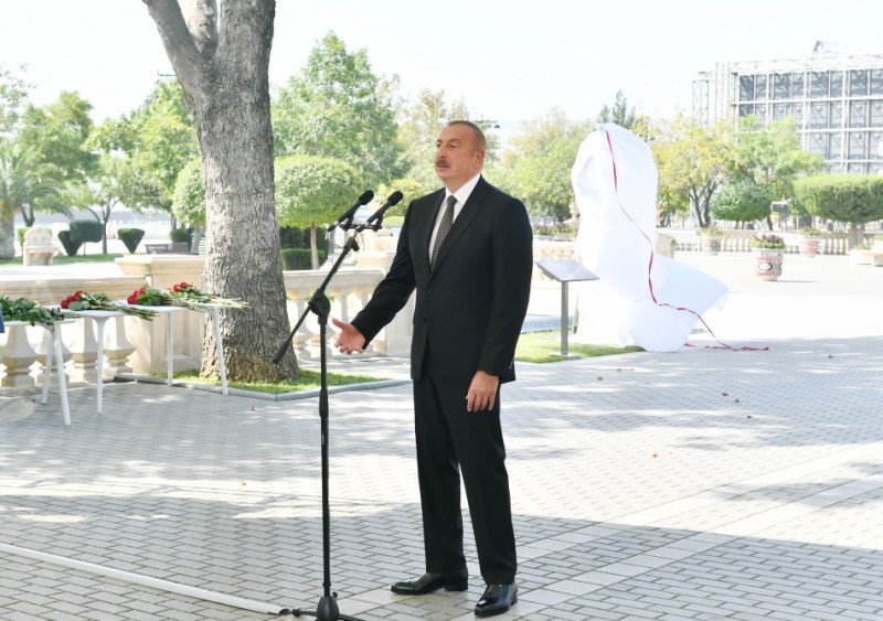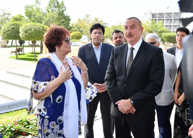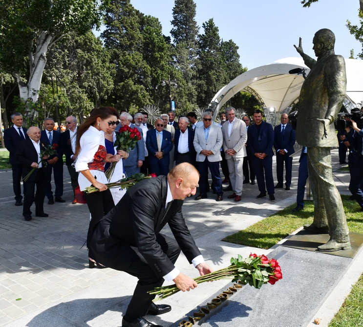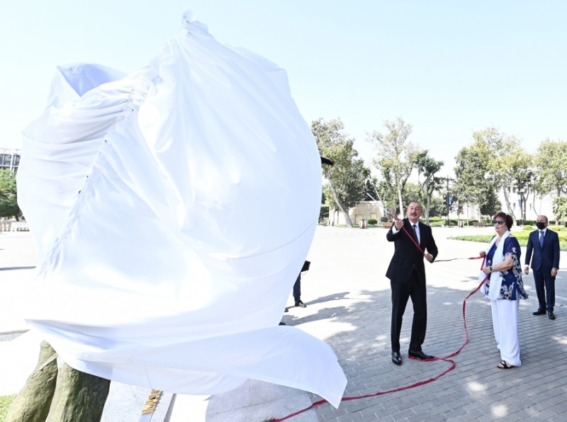 Daha sonra Prezident İlham Əliyev Müslüm Maqomayevin abidəsi üzərindəki örtüyü götürdü.
