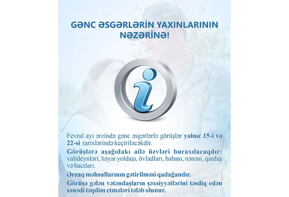 Bu ay gənc əsgərlərlə görüşlər fevralın 15-i və 22-si keçiriləcək
