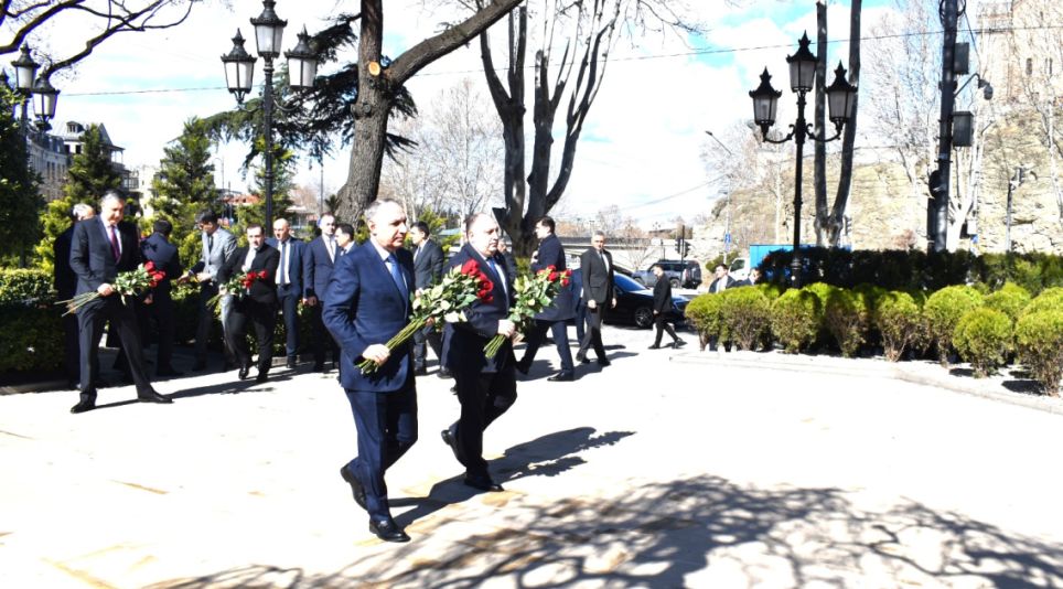 AZƏRTAC xəbər verir ki, nümayəndə heyəti əvvəlcə Tbilisidə Heydər Əliyev parkında Ulu Öndərin abidəsi önünə əklil qoyub, əziz xatirəsini dərin ehtiramla yad edib.