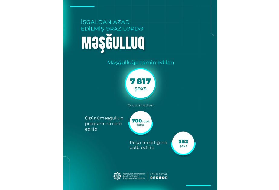 Qarabağda 7 min 800 nəfərdən çox sakinin məşğulluğu təmin edilib