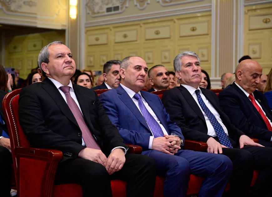 Yeni Azərbaycan Partiyasının himni səsləndiriləndən sonra tədbir BDU-nun Mədəniyyət-yaradıcılıq Mərkəzinin hazırladığı bədii hissə ilə davam edib.