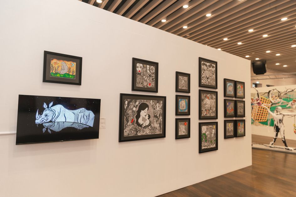 Çıxışlardan sonra Leyla Əliyeva, Arzu Əliyeva və iştirakçılar sərgidə nümayiş etdirilən əsərlərlə tanış olublar.