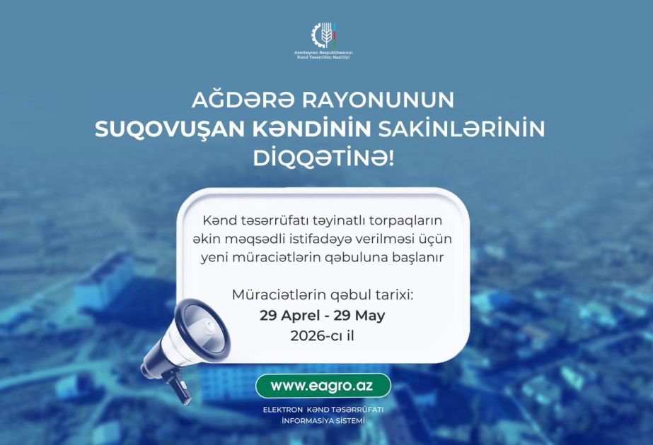 Ağdərənin Suqovuşan kəndində torpaqların əkin məqsədli istifadəyə verilməsi üçün müraciətlərin qəbuluna başlanır