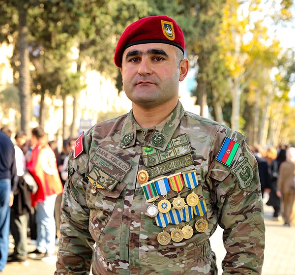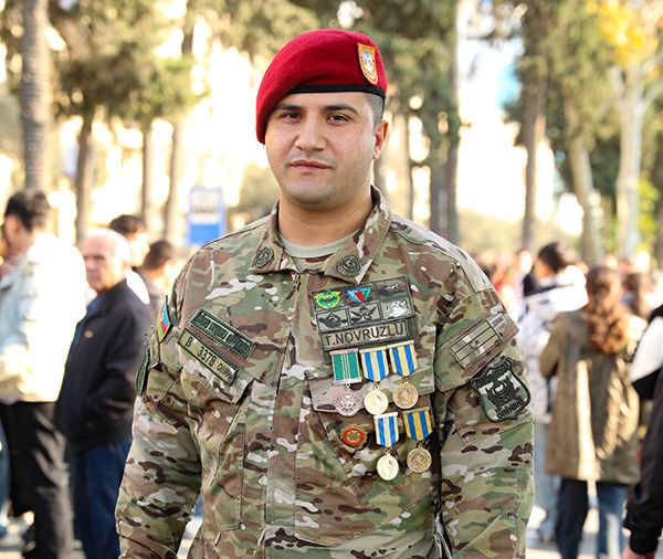 Bu arada bizə qələbə sevinci yaşadan XTQ-nin sabiq döyüşçüsü, ehtiyatda olan gizir Rahil Xəlilovla söhbət edirik. Rahilin döyüş yolu Kəlbəcərdən başlayıb. O, Cəbrayılın, Xocavəndin, Hadrutun, Füzulinin, Şuşanın azad olunması uğrunda gedən döyüşlərdə iştirak edib. Noyabrın 4-də Şuşa istiqamətində aparılan əməliyyatlarda yaralanan Rahil deyir ki, qələbə paradında qalib ordunun əsgəri kimi iştirak etmək həyatında fəxr etdiyi hadisələrdəndir: "Torpaqlarımızın azadlığı uğrunda canını verən şəhidlərimizin ruhu qarşısında baş əyirəm. Bizi qələbəyə aparan Müzəffər Ali Baş Komandana dərin minnətdarlığımı bildirirəm. Bu qələbə bütün xalqın qələbəsidir. Döyüşdə bizə ruh verən, qələbəyə aparan xalqımızın birliyi idi. Bu gün də həmin birliyi görürəm və böyük fərəh hissi ilə "Yaşa, Azərbaycan!" deyirəm".