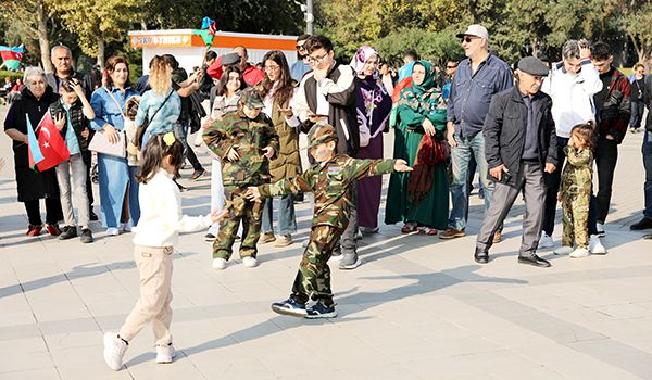 Bizə qürur yaşadan, sinələrini orden və medallar bəzəyən qazilərimiz, müharibə iştirakçıları izdihamın içində daha əzəmətli görünürdülər. Cəsur baxışlı, dik duruşlu qəhrəmanlarımıza insanlar hörmətlə yol verir, salamlayır, ehtiramla əllərini sıxıb xatirə şəkilləri çəkdirmək üçün növbəyə dururdular. Bu yalnız minnətdarlıq hissinin yox, həm də sarsılmaz birliyin nümayişi idi.