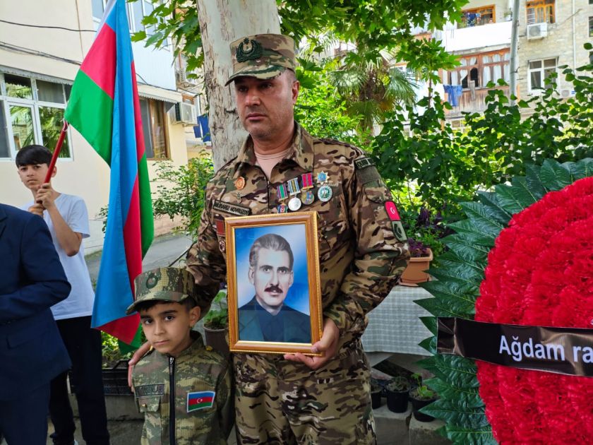 Şəhidin nəşi yaylım atəşi altında torpağa tapşırılıb. Nəşin üzərinə örtülmüş Azərbaycanın üçrəngli bayrağı şəhidin oğluna verilib.