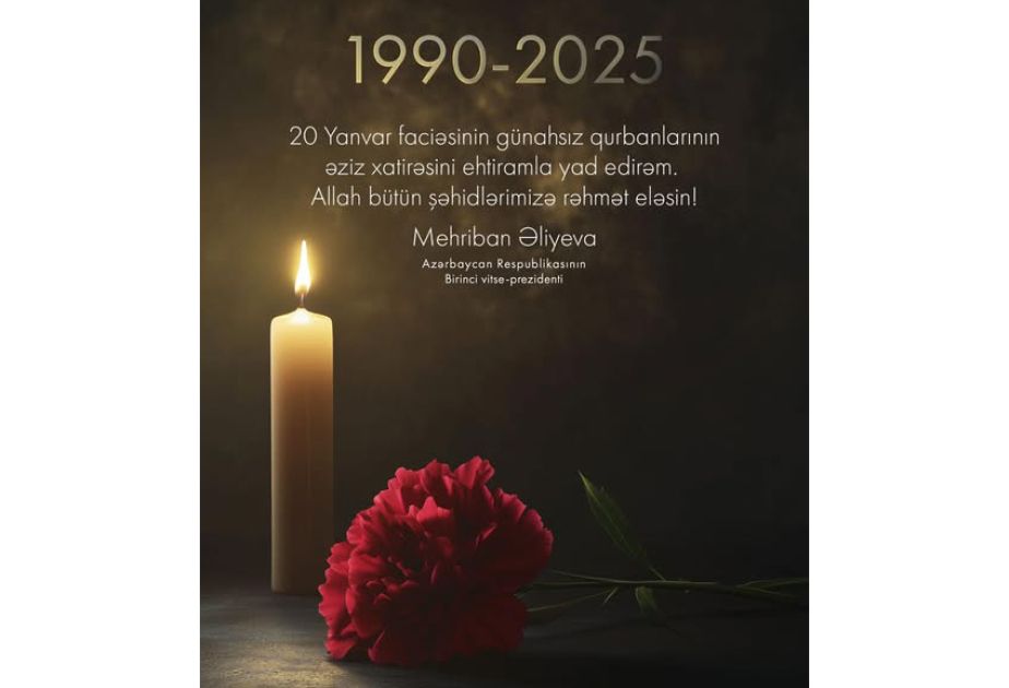 Azərbaycan Respublikasının Birinci vitse-prezidenti Mehriban Əliyeva sosial şəbəkə hesablarında 20 Yanvar faciəsinin 35-ci ildönümü ilə bağlı paylaşım edib.