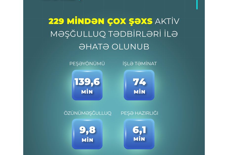 Əmək və Əhalinin Sosial Müdafiəsi Nazirliyinin tabeliyində Dövlət Məşğulluq Agentliyi bu ilin birinci yarımilində 229 min 500 şəxsi aktiv məşğulluq tədbirləri ilə əhatə edib.
