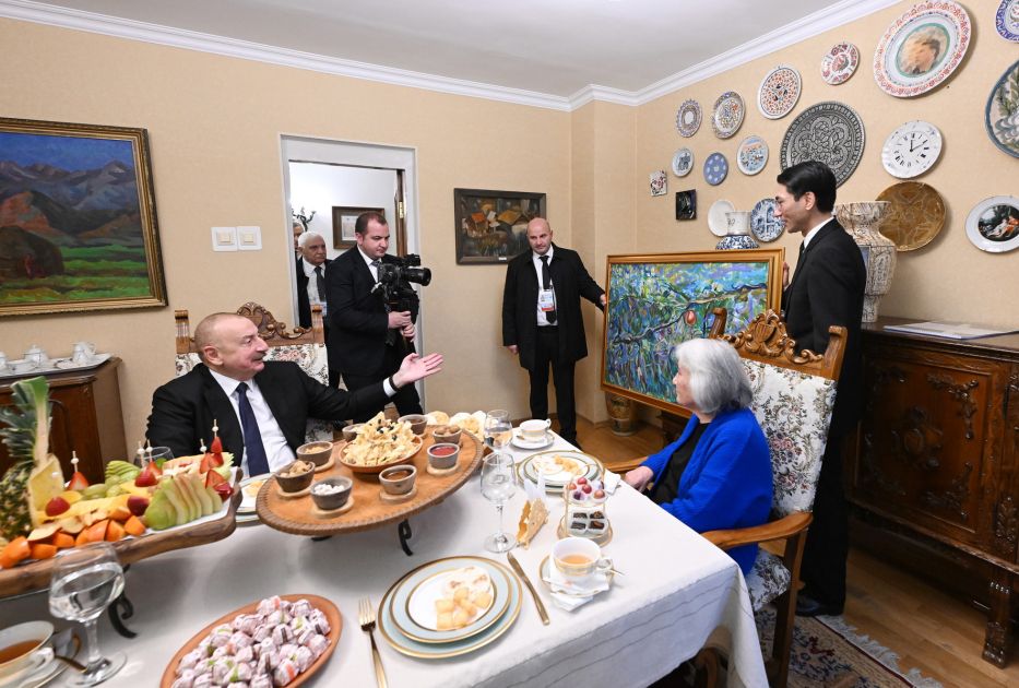 Daha sonra Prezident İlham Əliyev və Çingiz Aytmatovun ailə üzvləri birgə çay süfrəsi arxasında söhbət etdilər.