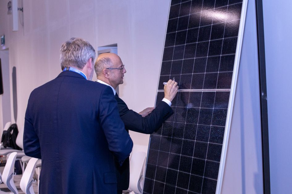 Sonra isə simvolik olaraq stansiyanın ilk günəş paneli imzalanıb. İmzalama prosesinə SOCAR və Azərbaycan İnvestisiya Şirkəti də qoşulub. “Şəfəq” GES-də illik təxminən 500 milyon kilovat-saat elektrik enerjisi istehsalı gözlənilir ki, bu da ildə 120-150 milyon kubmetr təbii qaza qənaət, 260-330 min ton karbon emissiyasının azaldılması deməkdir.