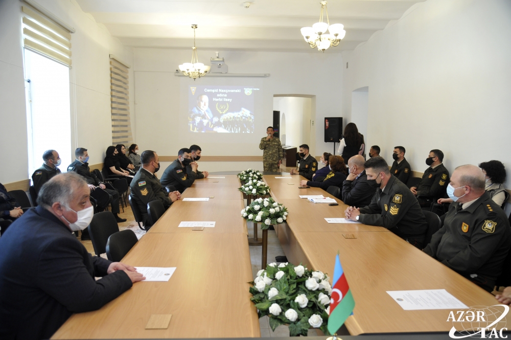 Aprelin 19-da Azərbaycan Hərb Tarixi Muzeyində Azərbaycan Ordusunun formalaşmasında əvəzsiz rolu olan ulu öndər Heydər Əliyevin yaradıcısı olduğu Cəmşid Naxçıvanski adına Hərbi Liseyin 50 illiyinə həsr olunmuş tədbir keçirilib.