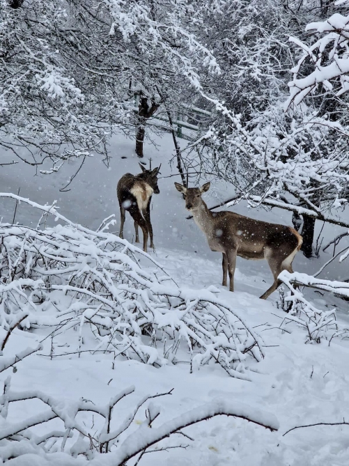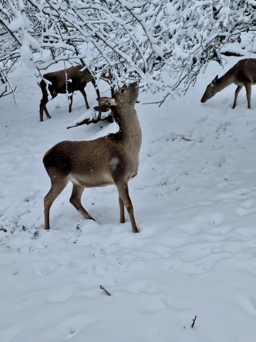 Qarlı qış mənzərəsi xüsusi mühafizə olunan təbiət ərazilərində də heyrətamiz görüntülər ortaya çıxarıb. Cənubi Qafqazın ən böyük milli parkı olan Şahdağ Milli Parkının qarlı havanın yaratdığı mənzərə insanı xüsusilə valeh edir. Cəlbedici qış görüntülərinə zubrlar və nəcib marallar əlavə gözəllik qatır.