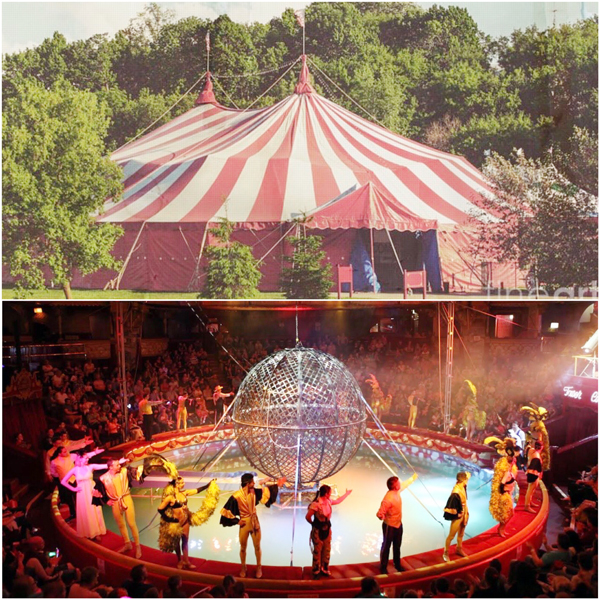 Akrobatların, əhliləşdirilmiş heyvanların, kəndirbazların, sehrbazların, musiqiçilərin müşayiəti ilə hazırlanan şouların nümayiş etdirildiyi məkan əsasən sirklərdir. Sirk sözü latın dilində (Circus) dairə mənasını verir. Təsadüfi deyil ki, sirk məkanları da məhz dairəvi formada tikilir.