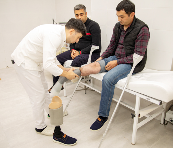 Daha sonra qazimizin ayağına protez salınması prosesini izlədik. Məhəmməd hazırda mərkəzin stasionar şöbəsində müalicə alır.