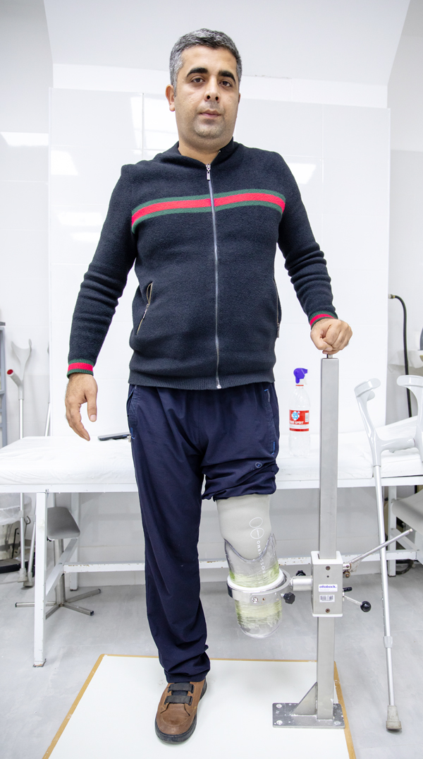 Yüksək texnologiyalı protezlə təmin olunan mayor Vurğun Əbilov protezin yoxlanışı üçün mərkəzə gəlmişdi. 17 ildir hərbi sahədə çalışan zabit sağ ayağının dizdən aşağı hissəsini itirsə də, protezlə təminatı sayəsində sevdiyi sahədən belə ayrı düşməyib.