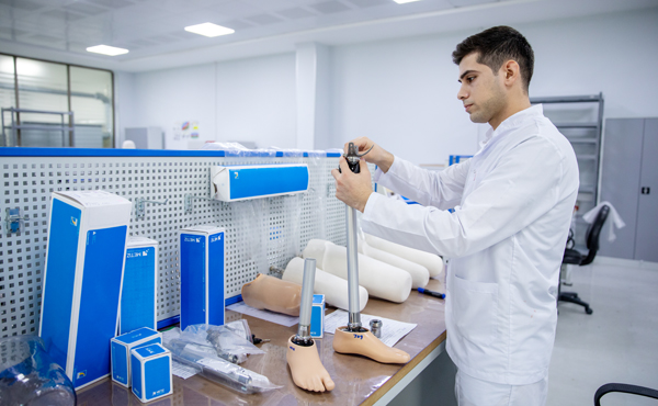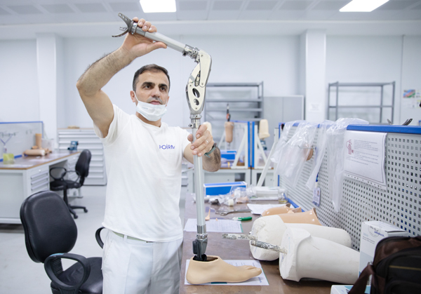 Sonra mərkəzin ikinci mərtəbəsində fəaliyyət göstərən protezlərin hazırlandığı sexə baş çəkib buradakı avadanlıqlarla tanış olduq. İndiyədək görülən işlər barəsində məlumat verən Protez-Ortopedik İstehsalat və Reabilitasiya Mərkəzinin direktoru Asif Məcidov dedi ki, hazırda mərkəzdə yüksək texnologiyalı protezlər dünyada məşhur protez istehsalçılarından olan Almaniyanın "OTTO BOKK" və İslandiyanın "ÖSSUR" firmasının komplektləşdiriciləri əsasında hazırlanır.