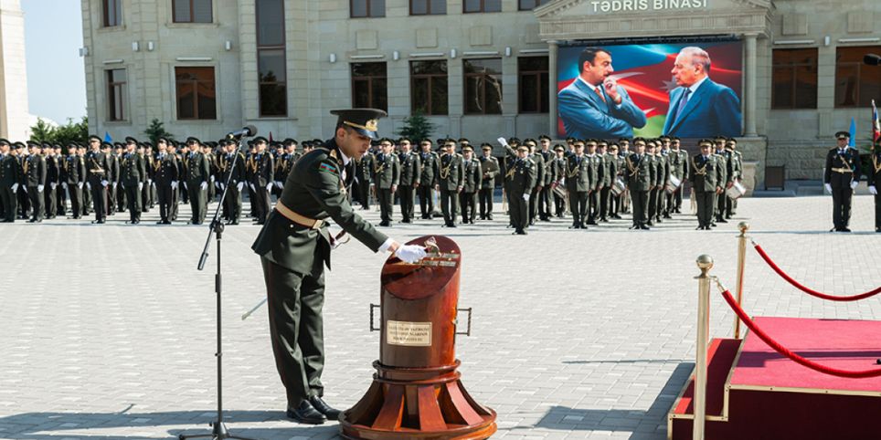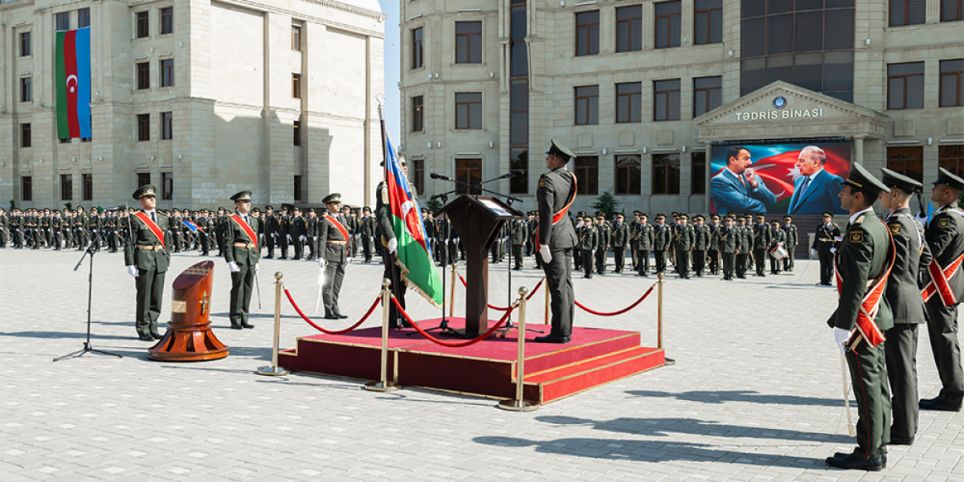 Sonra Döyüş Bayrağı üçüncü kursun kursantlarına təhvil verilib. Gənc zabit Ç.Cəfərli “Yaş kötüyü”nə rəmzi xatirə lövhəsini vurub.
