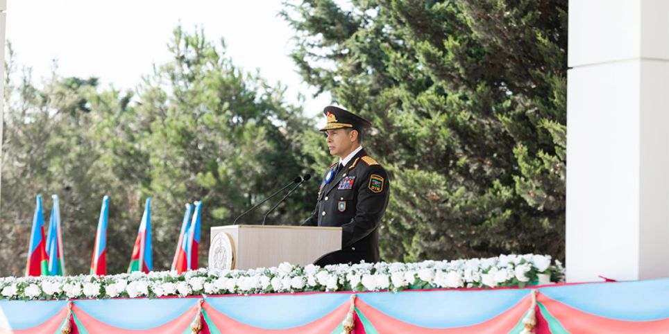 Məzunların buraxılış mərasiminin Hərbi İnstitutun həyatında əlamətdar hadisələrdən biri olduğunu diqqətə çatdıran nazir müavini – Daxili Qoşunların komandanı general-leytenant Şahin Məmmədov təhsil müəssisəsinin inkişaf yolu, maddi-texniki və tədris bazasının gücləndirilməsi istiqamətində görülən işlər və qarşıda duran vəzifələr barədə məruzə edib.