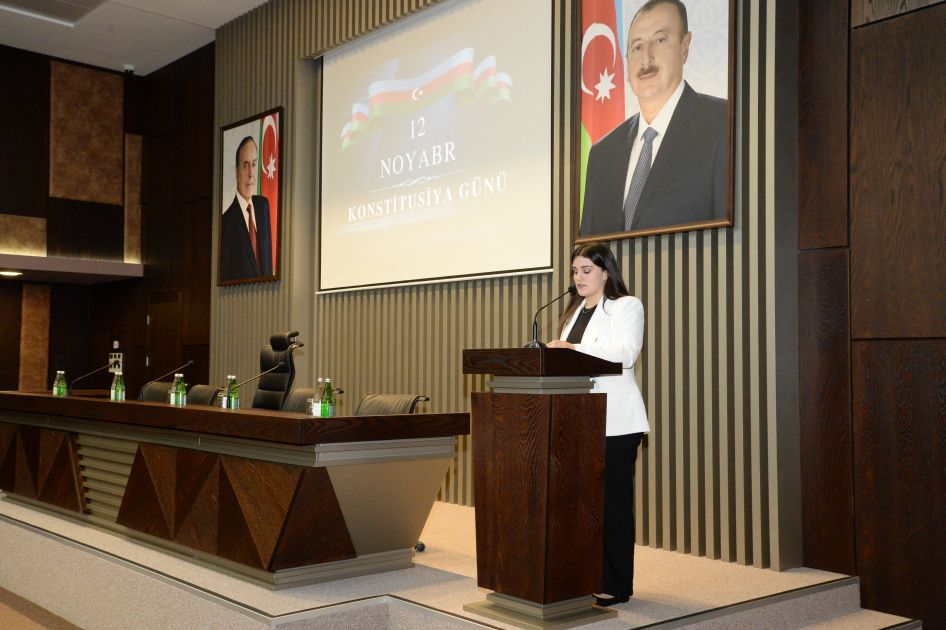 Çıxış edən iştirakçılar bildiriblər ki, müstəqil Azərbaycan Respublikasının Konstitusiyası ölkəmizdə demokratik, hüquqi, dünyəvi dövlət quruculuğu prosesinə hüquqi baza yaradıb və onun inkişafına güclü təkan verib. Azərbaycanın müasir tarixində dövlətçilik ənənələrinin bərpası və möhkəmləndirilməsi məhz Ümummilli Lider Heydər Əliyevin adı ilə bağlıdır. Ulu Öndərin cəsarətlə həyata keçirdiyi əsaslı islahatlar respublikamızı inkişaf yoluna çıxarmaqla yanaşı, qanunun aliliyini təmin edən, hüquqi, dünyəvi dövlət quruculuğuna yol açan yeni milli Konstitusiyanın hazırlanmasına və qəbuluna şərait yaradıb. 1995-ci ildə qəbul olunmuş Azərbaycan Respublikasının Konstitusiyası müasir dövlətçiliyimizin hüquqi əsaslarını təşkil edən, ölkənin müstəqilliyini hüquqi cəhətdən təsdiqləyən fundamental sənəd kimi tarixə düşüb. Ulu Öndər Heydər Əliyevin bilavasitə rəhbərliyi ilə hazırlanmış bu sənədin hər bir maddəsi Ümummilli Liderin Azərbaycanın gələcəyi ilə bağlı strateji baxışlarının təcəssümüdür. Prezident İlham Əliyevin uğurlu daxili və xarici siyasəti nəticəsində Konstitusiyada təsbit olunan bütün müddəaların təmin olunduğu diqqətə çatdırılıb. Vurğulanıb ki, Prezident İlham Əliyevin 2003-cü ildə ali vəzifəyə seçildiyi dövrdən başlayaraq qarşısına qoyduğu strateji hədəf Ali Qanunumuzun müddəalarının bütün ölkə ərazisində təmininə yönəlib, Vətən müharibəsi və ardınca antiterror əməliyyatı ilə Azərbaycan bütün ərazisində suverenliyini tam bərpa edib.