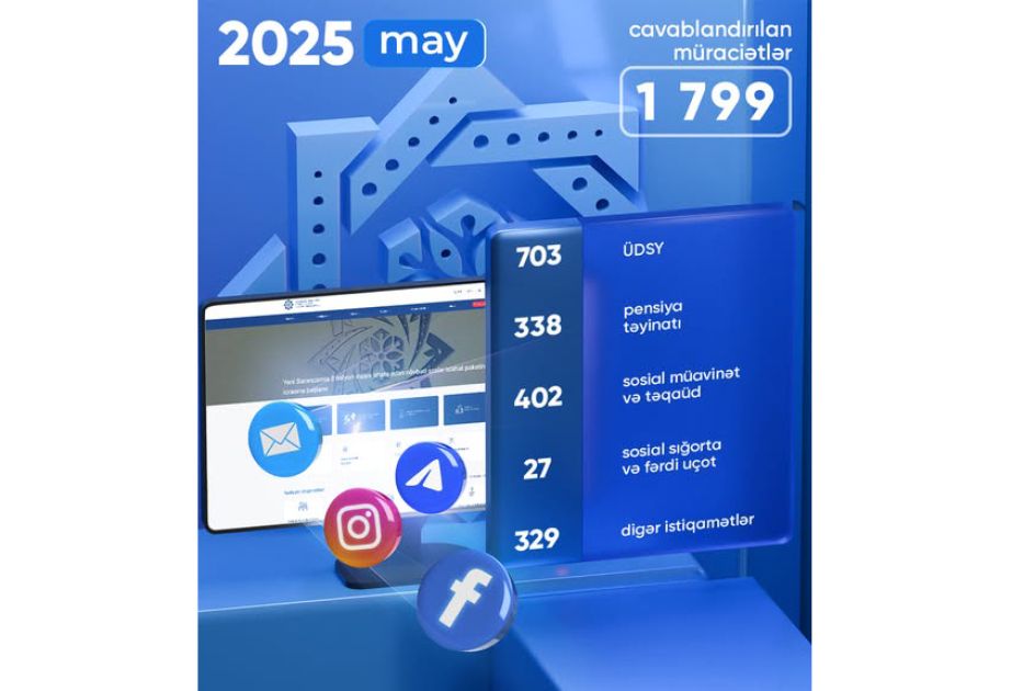 Dövlət Sosial Müdafiə Fondunun (DSMF) fəaliyyət istiqamətləri üzrə sosial şəbəkələr vasitəsilə bu ilin may ayı ərzində 1799 vətəndaş müraciəti cavablandırılıb.
