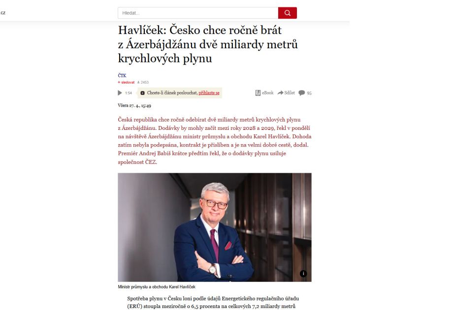 Çexiya nəşri energetika sahəsində Azərbaycanla əməkdaşlığın perspektivlərindən yazır