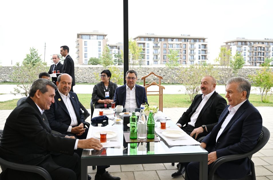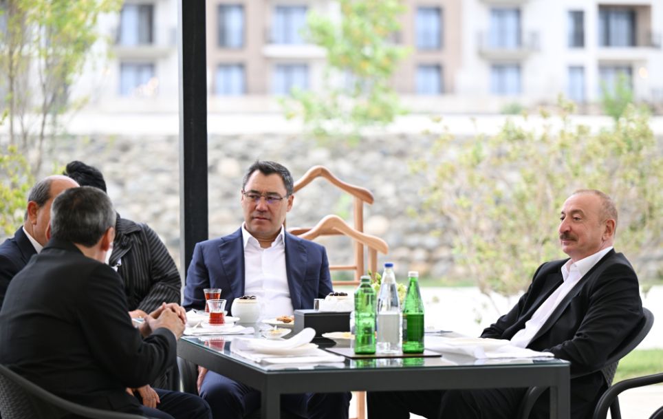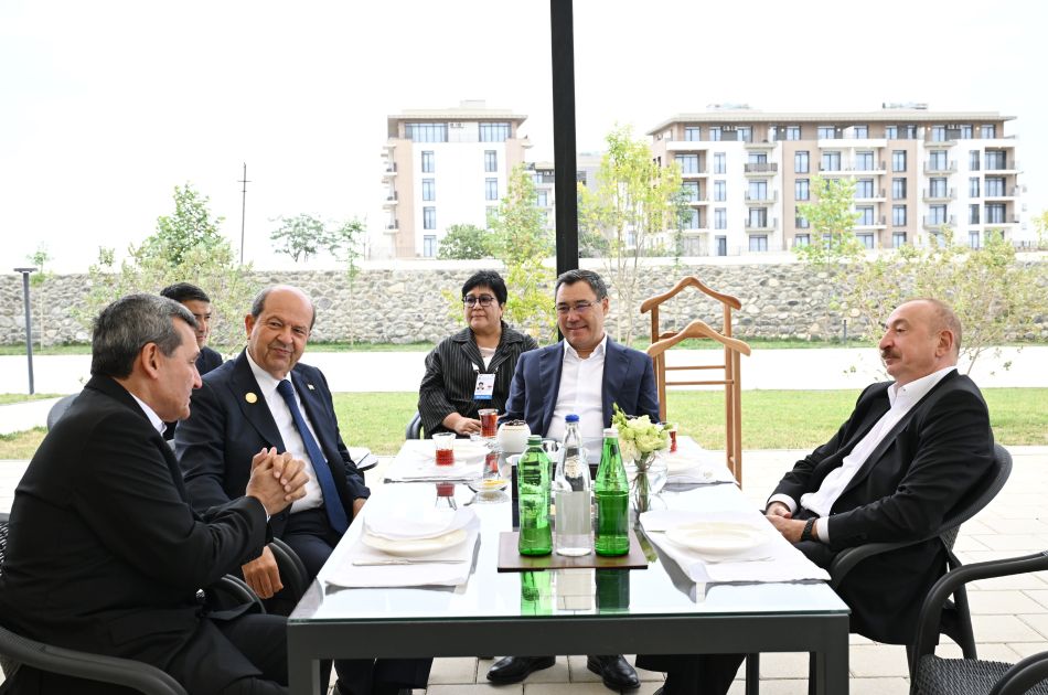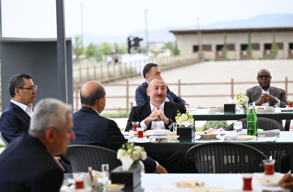 AZƏRTAC xəbər verir ki, əvvəlcə Azərbaycan Prezidenti və qonaqlar çay süfrəsi arxasında söhbət etdilər.
