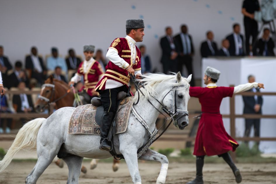 ECO-nun 17-ci Zirvə görüşünün iştirakçıları Ağdamdakı “İmarət” Kompleksində Qarabağ atlarının “Zəfər” şousunu izləyiblər