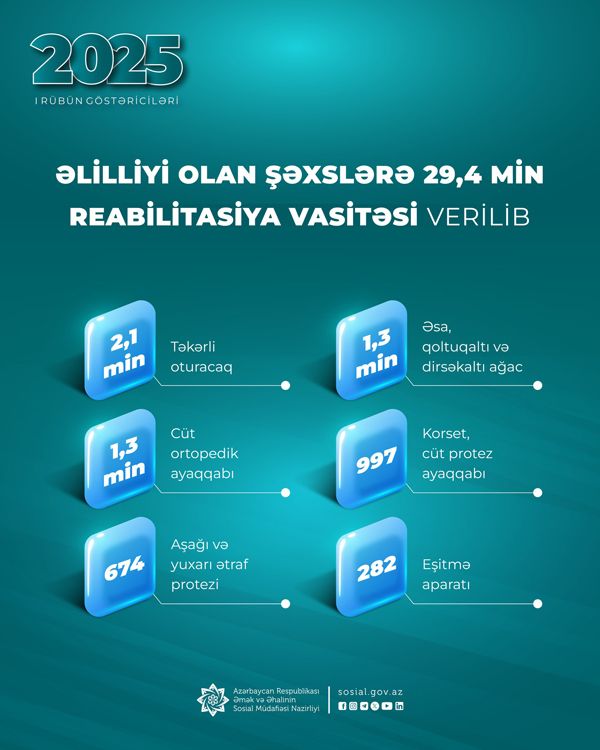 Nazirliyin reabilitasiya mərkəzlərinin fəaliyyəti də əhalinin əlilliyi olan təbəqəsi tərəfindən razılıqla qarşılanır. Yalnız bu ilin ilk üç ayında həmin mərkəzlərdə əlilliyi olan 27,9 min şəxsə reabilitasiya xidmətləri göstərilib, 4500 əlil şəxsə 29,4 min reabilitasiya vasitəsi verilib. ƏƏSMN tabeliyindəki Dövlət Tibbi-Sosial Ekspertiza və Reabilitasiya Agentliyinin reabilitasiya mərkəzlərində ənənəvi üsullarla paralel olaraq, 2018-ci ildən ötən dövrdə qabaqcıl dünya təcrübəsinə uyğun olaraq robotik reabilitasiya, sosial-psixoloji reabilitasiya, yoqa, ippoterapiya, dance ability (rəqs terapiyası) və s. kimi reabilitasiya üsullarının da tətbiqinə başlanılıb. Həmçinin stasionar və ambulator xidmətlərlə yanaşı, son illər icma əsaslı, telereabilitasiya, səyyar formalarda da reabilitasiya xidmətləri göstərilir.