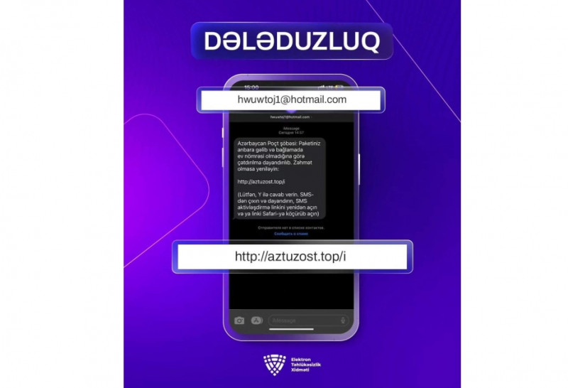 "Elektron Təhlükəsizlik Xidməti vətəndaşlara naməlum mənbələrdən daxil olan mesajların tərkibindəki keçidlərə daxil olmamağı, bank kartı və digər fərdi məlumatlarını qarşı tərəfə ötürməməyi, rəsmi məlumatları yalnız müvafiq qurumun özündən dəqiqləşdirməyi tövsiyə edir", - deyə məlumatda qeyd olunub.