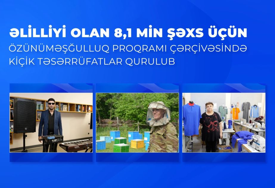 Əmək və Əhalinin Sosial Müdafiəsi Nazirliyinin İctimaiyyətlə əlaqələr şöbəsindən AZƏRTAC-a verilən məlumata görə, nazirliyin tabeliyindəki Dövlət Məşğulluq Agentliyi özünüməşğulluq proqramının icrasında həssas əhali qruplarına, o cümlədən əlilliyi olan şəxslərə üstünlük verir. Onlar üçün ilk mərhələdə təlimlər təşkil olunub, təlimlərdə kiçik biznesin təşkili və idarəedilməsi üzrə bilik və bacarıqlara yiyələniblər.
